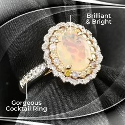 AAA Ethiopian Welo Opal And Moissanite Double Halo Ring In Platinum Over Sterling Silver 3.75 Ctw