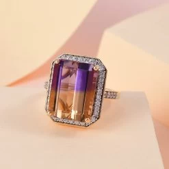 AAA Anahi Ametrine And White Zircon Halo Ring In Vermeil Yellow Gold Over Sterling Silver 13.15 Ctw