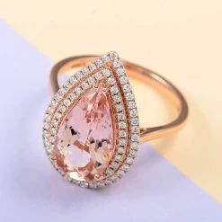 Certified Iliana 18K Rose Gold AAA Marropino Morganite And G-H SI Diamond Ring 5.30 Grams 13.15 Ctw