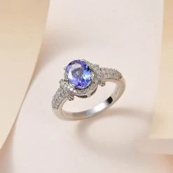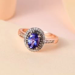 Tanzanite, Natural Champagne And White Diamond Ring In Vermeil RG Over Sterling Silver 1.85 Ctw