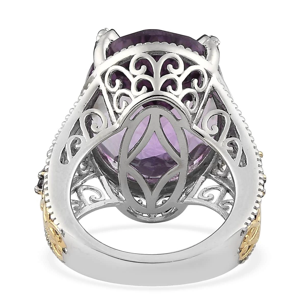 Unveiling this sterling silver ring, a masterpiece wrought in the blend of Vermeil Yellow Gold and Platinum finish. This ring spotlights a captivating gemstone fashioned in a timeless oval cut, gracefully cradled in a beautifully crafted setting.