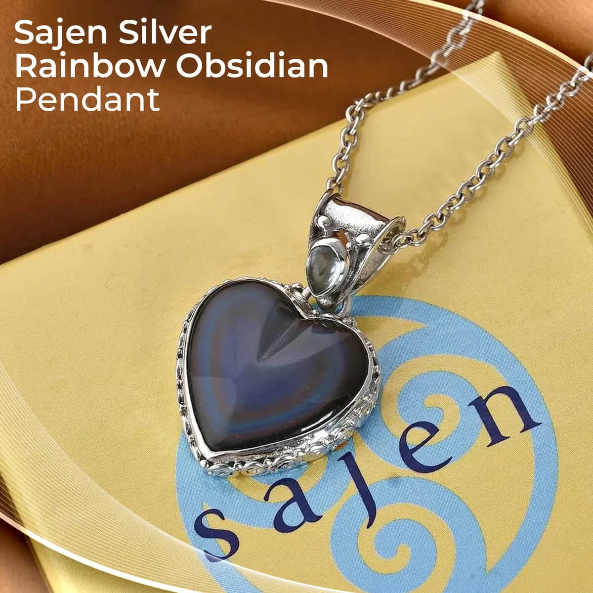 - ETHEREAL RAINBOW OBSIDIAN: Set at the center of the blue topaz pendant is a mesmerizing Rainbow Obsidian. Known for its captivating play of colors, the gem showcases an iridescent sheen that reflects a beautiful spectrum of colors under varying lights