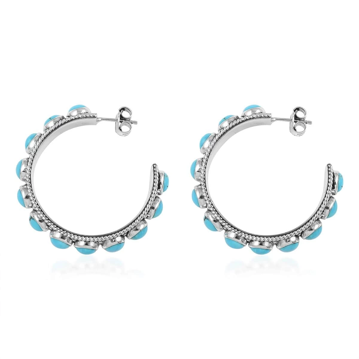 Meet the Santa Fe Style Kingman turquoise earrings, where the desertโs sun-kissed charm winks at high-end elegance. Forged in sterling silver and bejeweled with the jovial blue of Kingman Turquoise, these aren’t just silver hoop earrings โ they’re your passport to a spontaneous style adventure.