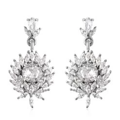 Inspired by a chrysanthemum flower, these simulated diamond earrings are adorable. The liveliness of these dangle earrings is evident in their looks. This piece of jewelry is an example of great craftsmanship where the gemstones have been given a marquise cut and arranged beautifully to give a floral design.