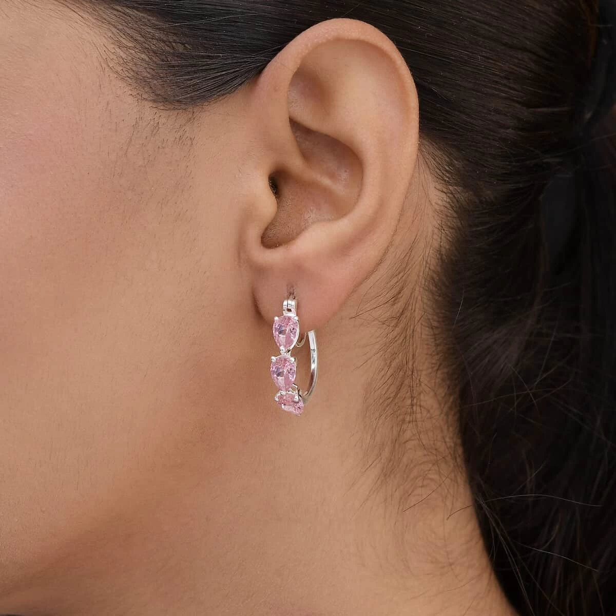 Brimming with beauty and color, these spectacular simulated pink diamond hoop earrings will go great with your entire range of fashionable outfits. Featuring pear-shaped simulated diamonds, the earrings radiate timeless sparkles and brilliance.
