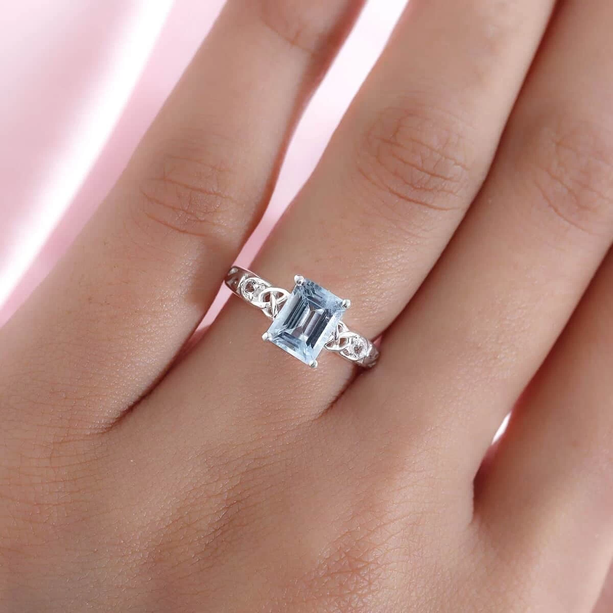 Offering endless opportunities to dazzle, this sky-blue topaz ring features infinity knot patterns on its band. Created in a durable sterling silver metal, this delicate ring features a sky-blue topaz octagon set neatly in the prongs. With two zircon rounds on its band, the ring is an ideal pair with all your everyday style and office attires.