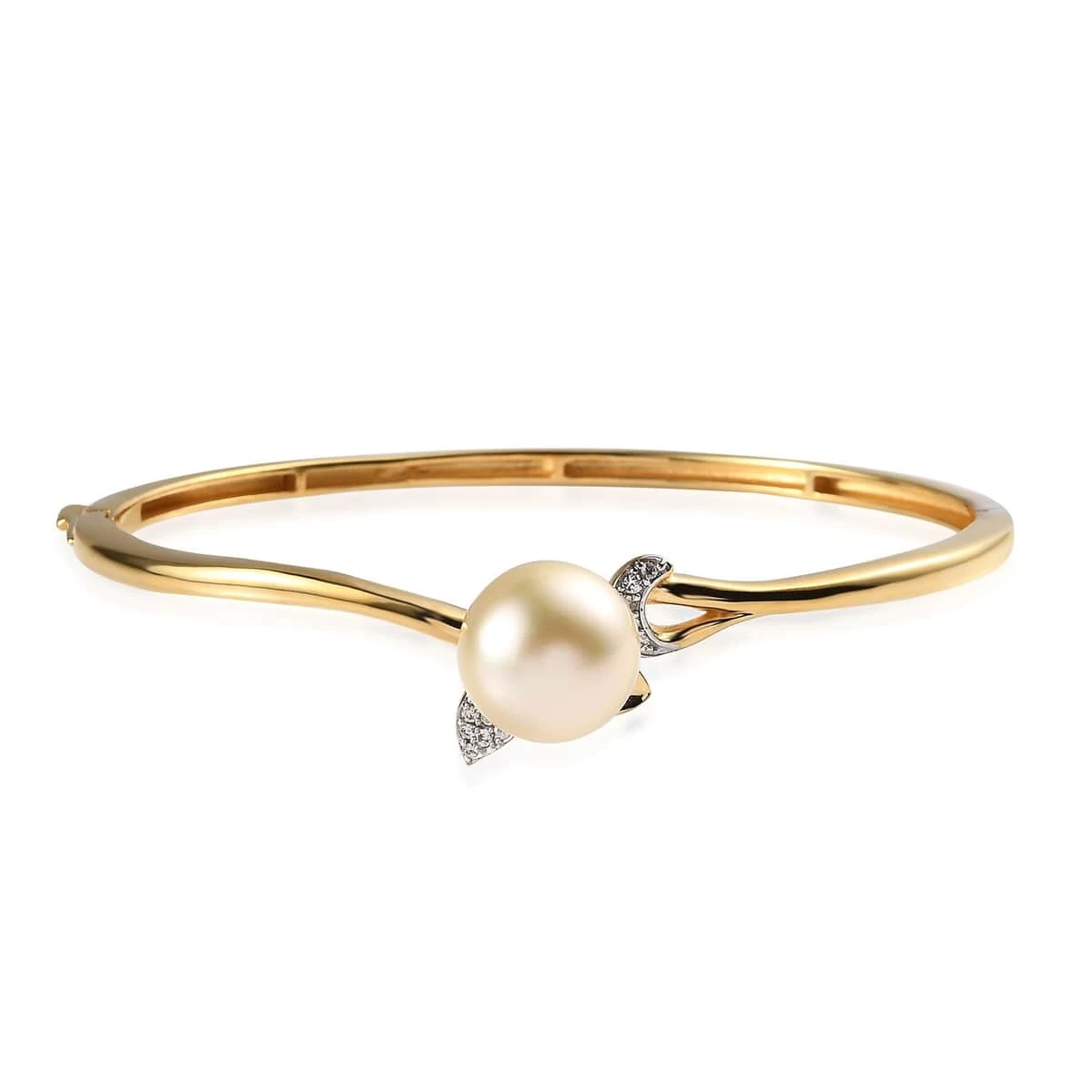 - GOLDEN GLORY: Crafted in vermeil yellow gold over sterling silver, this bangle bracelet exudes a warm, golden glow. The rich tone of gold enhances the overall elegance of the bracelet, amplifying the allure of the gold pearl bangle