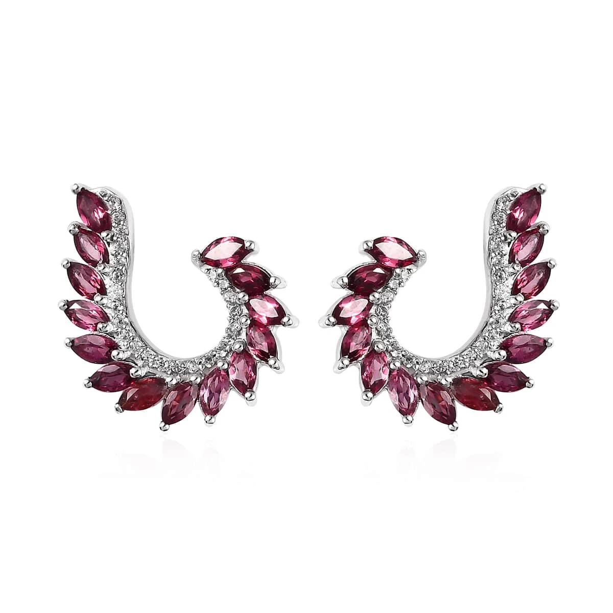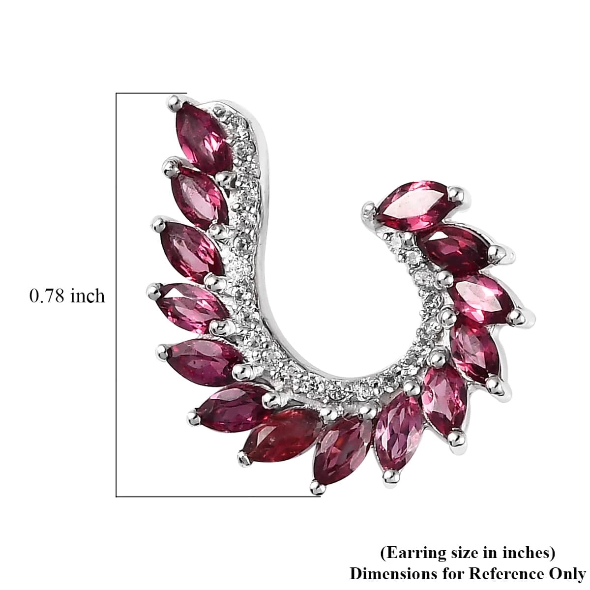 Sway with the elegance of nature, encapsulated in Tanzanian Rhodolite garnet and white zircon earrings. Drawing inspiration from wheat spikes, these platinum over sterling silver pieces combine marquise-cut garnets with sparkling zircons, curating a fancy, trendy symphony for your ears.