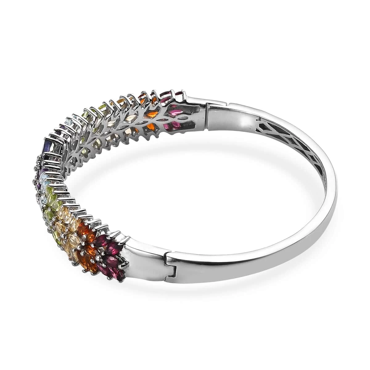 Introducing the exquisite tanzanite and multi-gemstone bangle bracelet, a luxurious masterpiece that exudes opulence and elegance. Crafted with meticulous artistry, this bracelet showcases a captivating combination of tanzanite and various gemstones set in Platinum over Sterling Silver.
