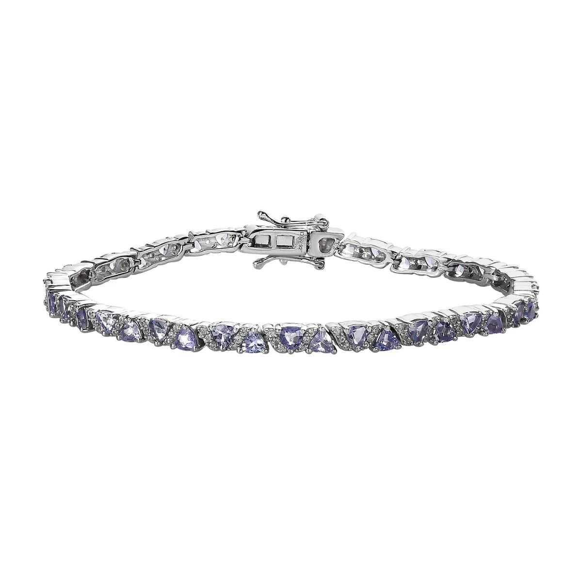 - FINE CRAFTSMANSHIP: The trillion-cut tanzanite stones featured in this bracelet have been expertly cut to showcase their mesmerizing color and clarity. The delicate triangular shape of the stones adds an extra touch of elegance and sophistication to the piece. The natural white zircon stones are carefully placed to accentuate the beauty of the tanzanite