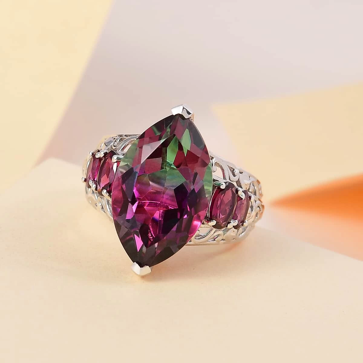 - GEMSTONE DETAILS: This 925 silver ring features a marquise-shaped watermelon quartz in the center. The four Orissa rhodolite garnet gemstones complement the beauty of the center stone