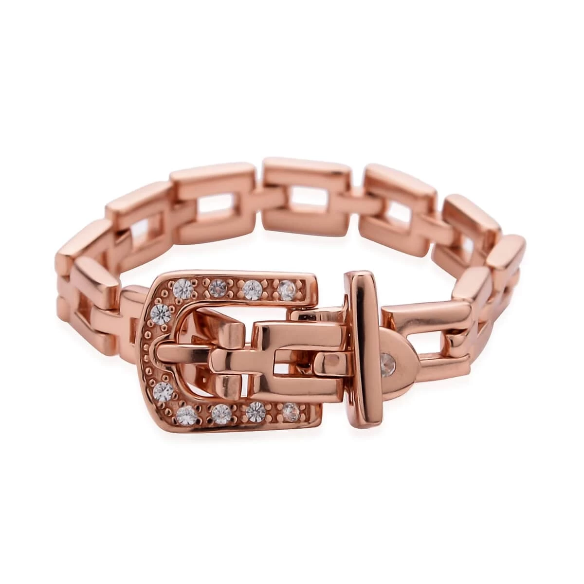 The popularity of belt buckle rings during the 18th century inspires this natural white zircon adjustable ring. This adjustable ring features elongated links connected, making a long chain. One end of the ring features a buckle design studded with sparkling zircons. The adjustable belt band moves through the buckle, making this belt buckle ring fit your finger size. Genuine plating is applied in a thin layer to this piece of jewelry to prevent it from getting tarnished. This trendy ring is crafted in sterling silver. This natural white zircon belt buckle ring is perfect for everyday wear and suits casual and professional outfits.